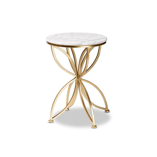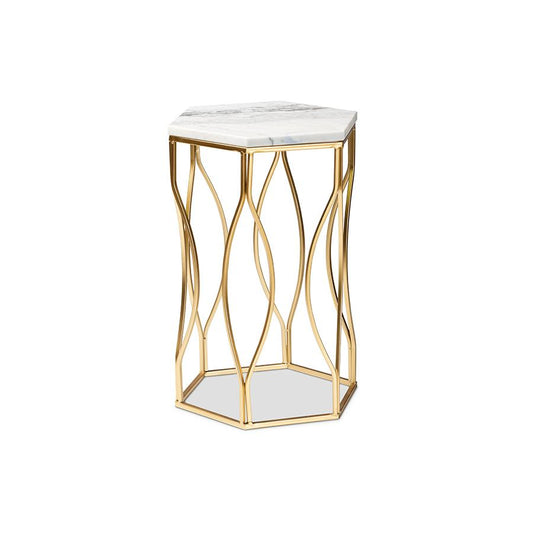 Baxton Studio Kalena Modern and Contemporary Go... Baxton Studio Kalena Modern and Contemporary Gold Metal End Table with Marble Tabletop
