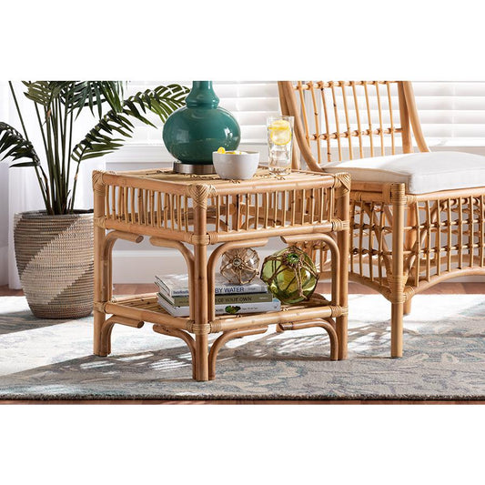 Baxton Studio Rinjani Modern Bohemian Natural B... Baxton Studio Rinjani Modern Bohemian Natural Brown Rattan End Table