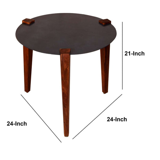 20 Inches Round Metal Top Side End Table With T... 20 Inches Round Metal Top Side End Table With Tapered Legs, Brown And Black By Benzara