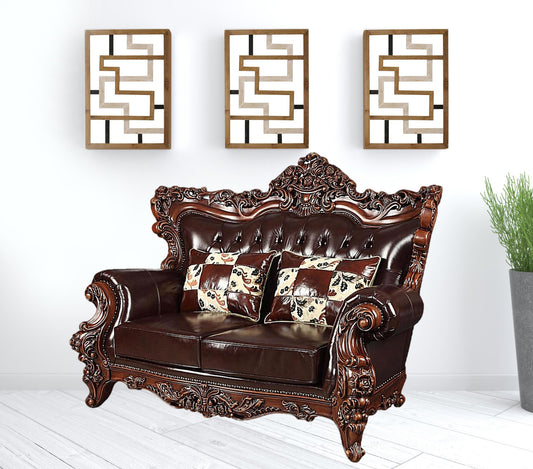 71" Espresso And Brown Faux Leather Curved Love... 71" Espresso And Brown Faux Leather Curved Love Seat By Homeroots