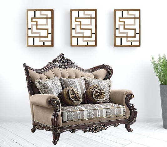 72" Beige And Dark Brown Linen Love Seat And To... 72" Beige And Dark Brown Linen Love Seat And Toss Pillows By Homeroots