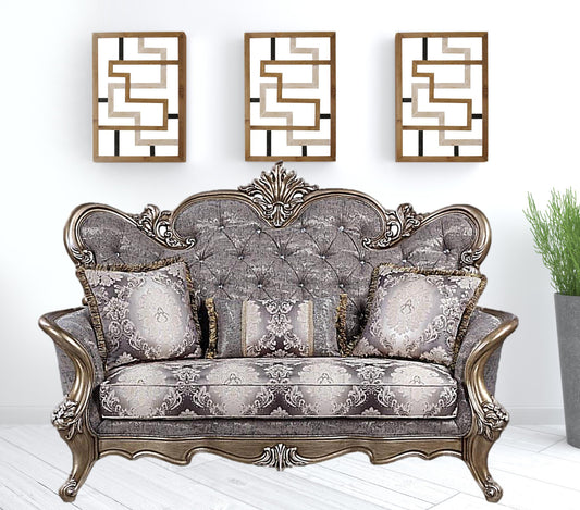 75" Gray And Platinum Cotton Blend Love Seat An... 75" Gray And Platinum Cotton Blend Love Seat And Toss Pillows By Homeroots