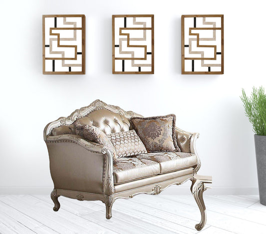 72" Beige And Gold Genuine Leather Love Seat By... 72" Beige And Gold Genuine Leather Love Seat By Homeroots