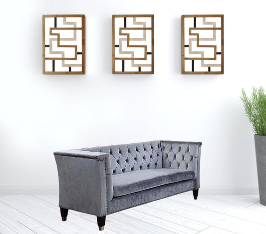 84" Light Gray Velvet And Gold Sofa By Homeroots 84" Light Gray Velvet And Gold Sofa By Homeroots
