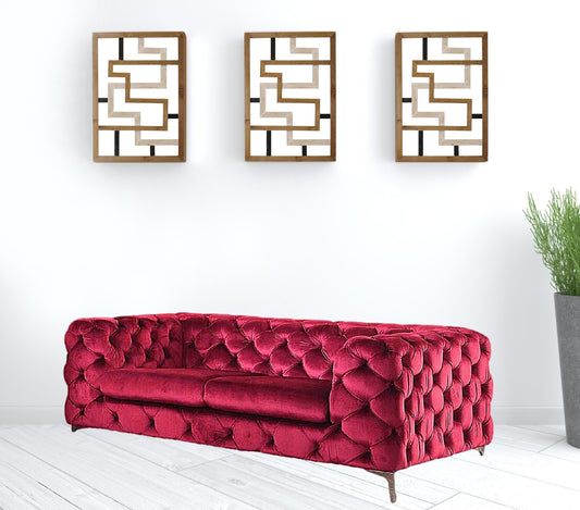 80" Red Velvet And Gold Sofa By Homeroots 80" Red Velvet And Gold Sofa By Homeroots
