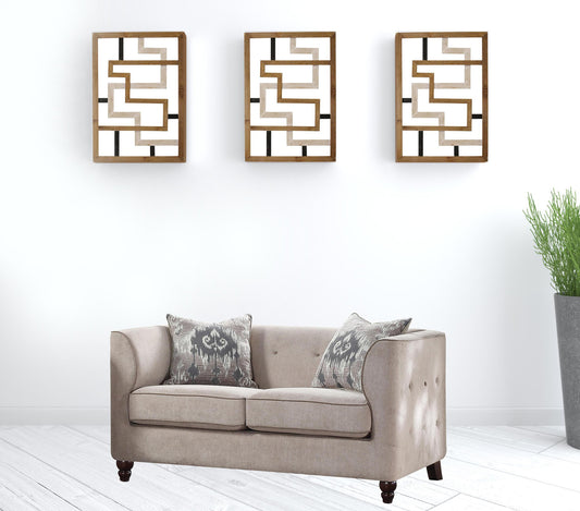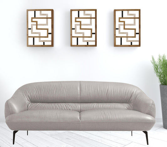 76" Cream Linen And Brown Sofa By Homeroots 76" Cream Linen And Brown Sofa By Homeroots