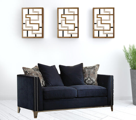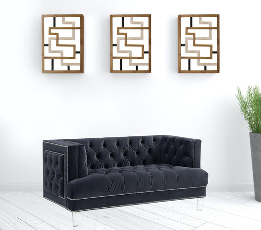 70" Blue Gray And Black Velvet Love Seat By Hom... 70" Blue Gray And Black Velvet Love Seat By Homeroots