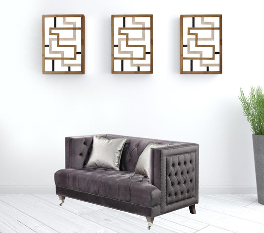64" Charcoal And Silver Velvet Love Seat By Hom... 64" Charcoal And Silver Velvet Love Seat By Homeroots