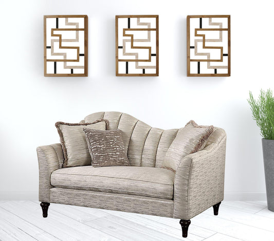66" Two Tone Ivory And Pearl Velvet Love Seat A... 66" Two Tone Ivory And Pearl Velvet Love Seat And Toss Pillows By Homeroots