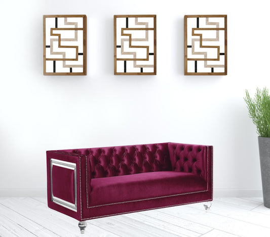 67" Burgundy And Silver Velvet Love Seat And To... 67" Burgundy And Silver Velvet Love Seat And Toss Pillows By Homeroots