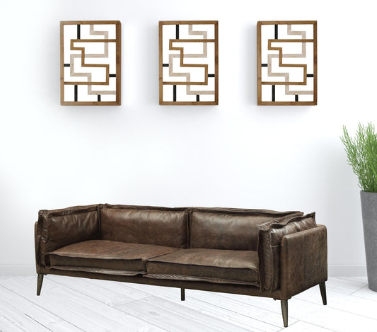 95" Cocoa Top Grain Leather And Black Sofa By H... 95" Cocoa Top Grain Leather And Black Sofa By Homeroots