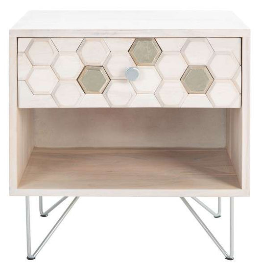 Safavieh Zinnia Nightstand - White Wash With Si... Safavieh Zinnia Nightstand - White Wash With Silver