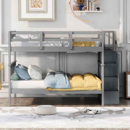 Gray Double Full Size Stairway Bunk Bed With Dr... Gray Double Full Size Stairway Bunk Bed With Drawer By Homeroots