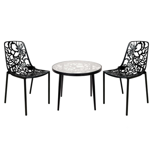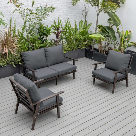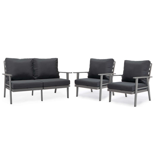 Grand 3 Piece Black Aluminum Outdoor Seating Se... Grand 3 Piece Black Aluminum Outdoor Seating Set with Dark Gray Cushions By Armen Living