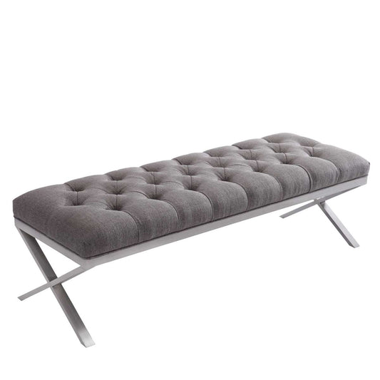 Noel Contemporary Bench in Slate Gray Linen and... Noel Contemporary Bench in Slate Gray Linen and Brushed Stainless Steel Finish By Armen Living