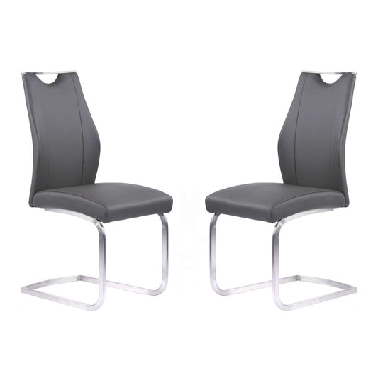 Copen Contemporary Dining Chair in Brushed Stai... Copen Contemporary Dining Chair in Brushed Stainless Steel and Gray Faux Leather - Set of 2 By Armen Living