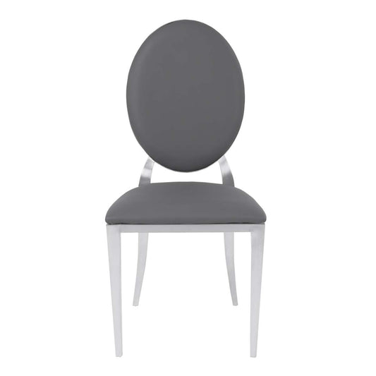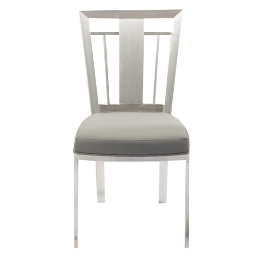 April Contemporary Dining Chair in Brushed Stai... April Contemporary Dining Chair in Brushed Stainless Steel Finish and Gray Faux Leather - Set of 2 By Armen Living