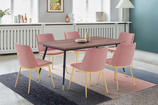 Messina and Nara Pink Velvet 7 Piece Rectangula... Messina and Nara Pink Velvet 7 Piece Rectangular Dining Set By Armen Living