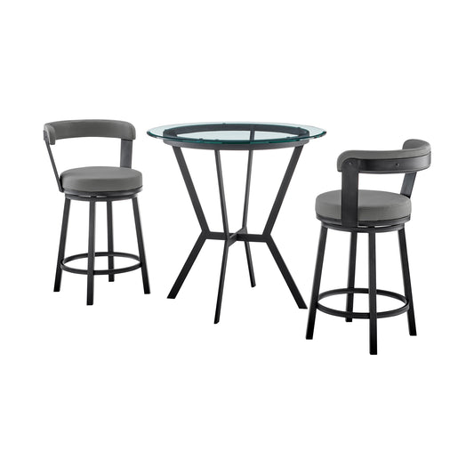 Naomi and Lorin 3-Piece Counter Height Dining S... Naomi and Lorin 3-Piece Counter Height Dining Set in Black Metal and Grey Faux Leather By Armen Living
