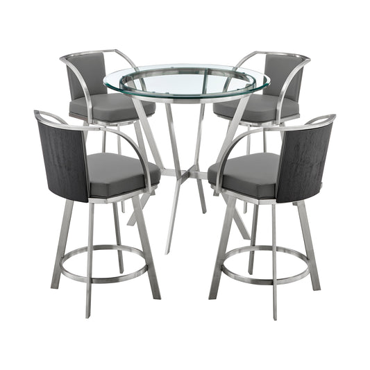 Naomi and Lorin 5-Piece Counter Height Dining S... Naomi and Lorin 5-Piece Counter Height Dining Set in Brushed Stainless Steel and Grey Faux Leather By Armen Living