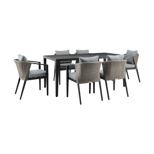 Aileen Outdoor Patio 7-Piece Dining Table Set i... Aileen Outdoor Patio 7-Piece Dining Table Set in Aluminum and Wicker with Grey Cushions By Armen Living