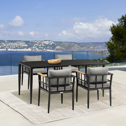 Beowulf Outdoor Patio 5-Piece Dining Table Set ... Beowulf Outdoor Patio 5-Piece Dining Table Set in Aluminum and Teak with Grey Cushions By Armen Living