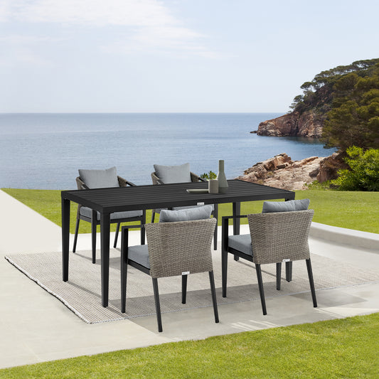 Aileen Outdoor Patio 5-Piece Dining Table Set i... Aileen Outdoor Patio 5-Piece Dining Table Set in Aluminum and Wicker with Grey Cushions By Armen Living