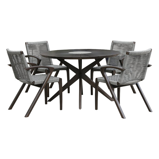 Koala Shasta and Camino 5 Piece Outdoor Dining ... Koala Shasta and Camino 5 Piece Outdoor Dining Set in Dark Eucalyptus Wood with Grey Rope By Armen Living