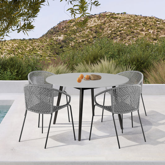 Felicia Outdoor Patio 5-Piece Dining Table Set ... Felicia Outdoor Patio 5-Piece Dining Table Set in Aluminum with Grey Rope and Cushions By Armen Living
