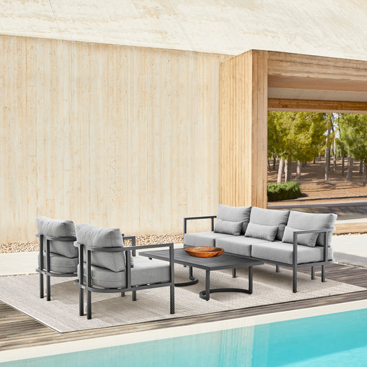 Grand 4 Piece Black Aluminum Outdoor Seating Se... Grand 4 Piece Black Aluminum Outdoor Seating Set with Dark Gray Cushions By Armen Living