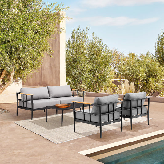 Grand 5 Piece Black Aluminum Outdoor Seating Se... Grand 5 Piece Black Aluminum Outdoor Seating Set with Dark Gray Cushions By Armen Living