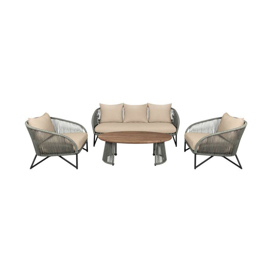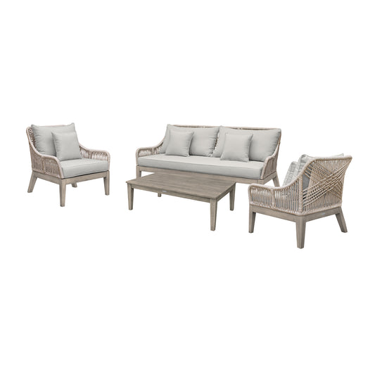 Hawaii 4 Piece Outdoor Patio Furniture Set in A... Hawaii 4 Piece Outdoor Patio Furniture Set in Acacia Wood and Rope with Grey Cushions By Armen Living