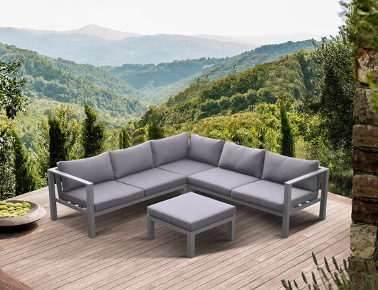 Cliff Outdoor Patio Aluminum Sectional in Grey ... Cliff Outdoor Patio Aluminum Sectional in Grey Powder Coated Finish with Grey Fabric Cushions By Armen Living