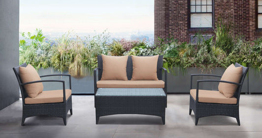 Oahu 4 piece Outdoor Wicker Patio Set with Brow... Oahu 4 piece Outdoor Wicker Patio Set with Brown Fabric Cushions and Temperated Glass Top By Armen Living