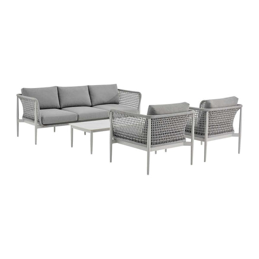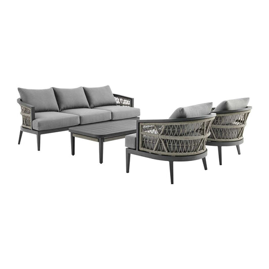 Zella Outdoor Patio 4 Piece Conversation Set in... Zella Outdoor Patio 4 Piece Conversation Set in Aluminum with Light Gray Rope and Cushions By Armen Living