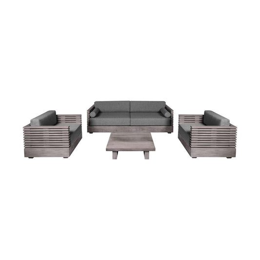 Vivid Outdoor Patio 4 Piece Conversation Set in... Vivid Outdoor Patio 4 Piece Conversation Set in Gray Eucalyptus Wood with Gray Olefin Cushions By Armen Living