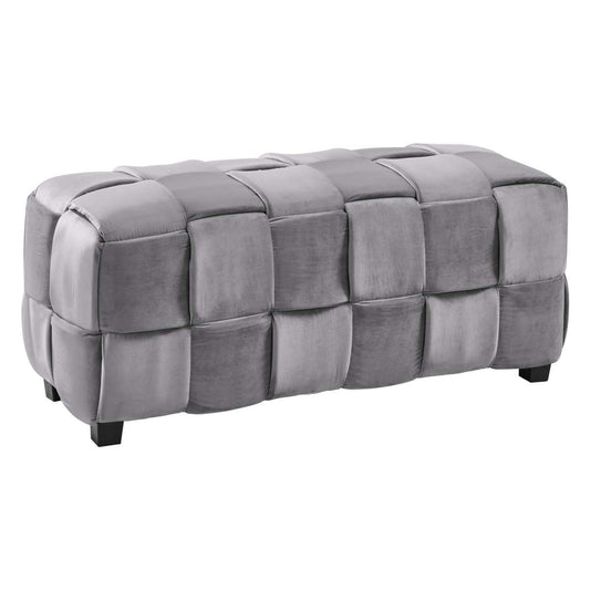 Silas Ottoman Bench in Gray Tufted Velvet with ... Silas Ottoman Bench in Gray Tufted Velvet with Nailhead Trim and Acrylic Legs By Armen Living