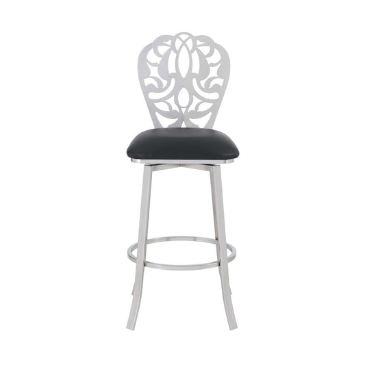 Cherie Contemporary 30" Bar Height Barstool in ... Cherie Contemporary 30" Bar Height Barstool in Brushed Stainless Steel Finish and Black Faux Leather By Armen Living
