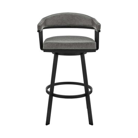 Kobe 30" Bar Height Swivel Bar Stool in Black F... Kobe 30" Bar Height Swivel Bar Stool in Black Finish and Gray Faux Leather By Armen Living