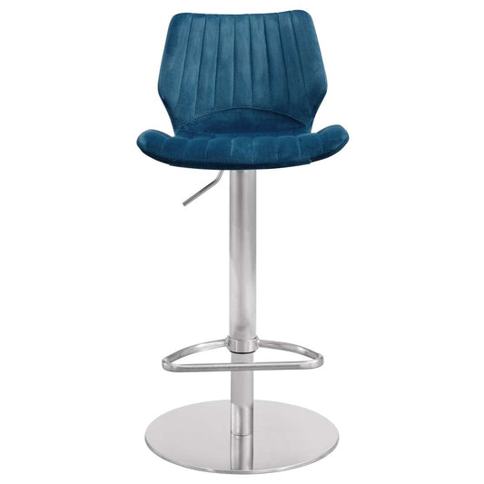 Oneida Adjustable Blue Velvet and Brushed Stain... Oneida Adjustable Blue Velvet and Brushed Stainless Steel Bar and Counter Stool By Armen Living
