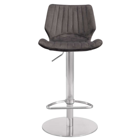 Oneida Adjustable Gray Velvet and Brushed Stain... Oneida Adjustable Gray Velvet and Brushed Stainless Steel Bar and Counter Stool By Armen Living