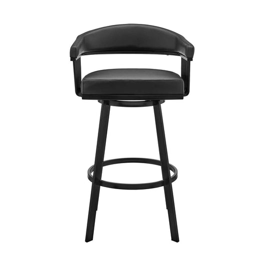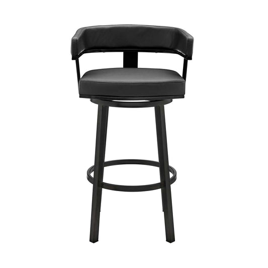 Kobe 30" Bar Height Swivel Bar Stool in Black F... Kobe 30" Bar Height Swivel Bar Stool in Black Finish and Black Faux Leather By Armen Living