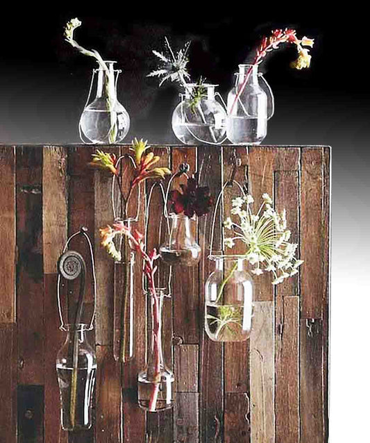 Metal Foliage Glass Hanging Vases, Set of 8 Metal Foliage Glass Hanging Vases, Set of 8