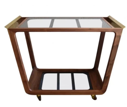 Wooden Bar Cart- Walnut, Smoked Glass & Brass Wooden Bar Cart- Walnut, Smoked Glass & Brass