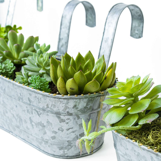 Wall/Railing/Deck Planters Zinc Finish, Oblong,... Wall/Railing/Deck Planters Zinc Finish, Oblong, Set of 3