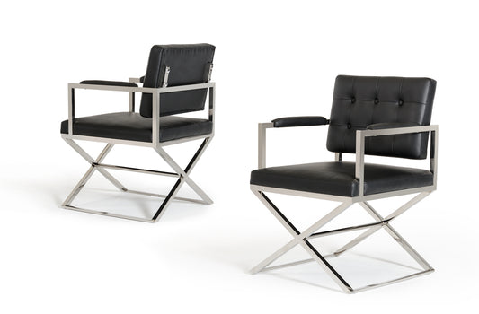 Two 77.5" Black Leather Look Chrome Metal And F... Two 77.5" Black Leather Look Chrome Metal And Foam Dining Chairs By Homeroots