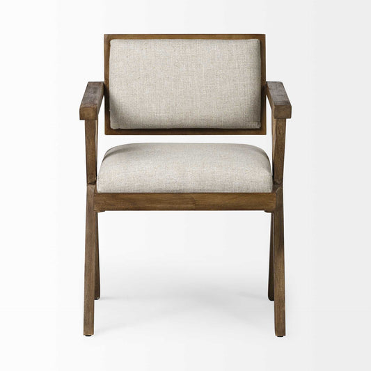 Cream Fabric Wrap With Brown Wood Frame Dining ... Cream Fabric Wrap With Brown Wood Frame Dining Chair By Homeroots