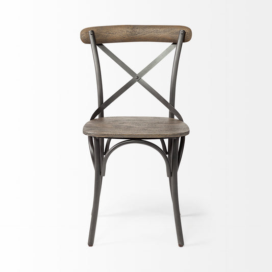 Brown Solid Wood Seat With Grey Iron Frame Dini... Brown Solid Wood Seat With Grey Iron Frame Dining Chair By Homeroots
