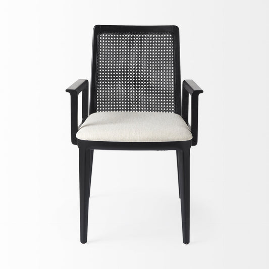 Black And Cream Uholstery And Cane Dining Armch... Black And Cream Uholstery And Cane Dining Armchair By Homeroots