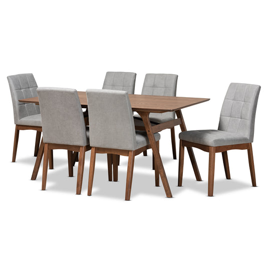 Baxton Studio Lanier Modern and Contemporary Gr... Baxton Studio Lanier Modern and Contemporary Grey Fabric Upholstered and Walnut Brown Finished Wood 7-Piece Dining Set